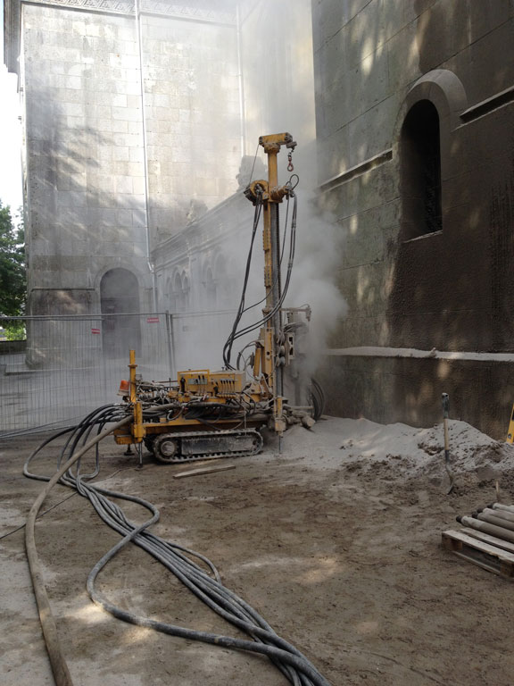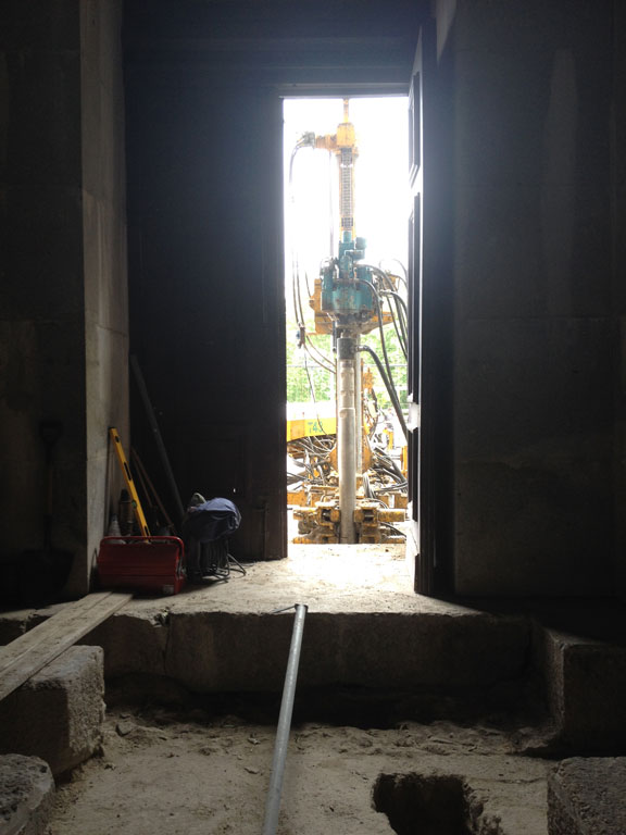 Descrição: Execução de microestacas no interior e no exterior do Mosteiro de S.Torcato, para reforço de fundações